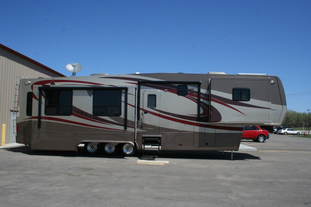 In early 2009 New Horizons began production of the prototype that was to become the flagship product line: the Majestic. This prototype was first shown at The Rally, in Albuquerque, NM in May of 2009. The Majestic was targeted at being the finest luxury fifth wheel RV on the market. With the demise of Teton and Travel Supreme the high-end luxury fifth wheel market needed a new RV to fill the void, and the Majestic does so nicely. The Majestic is a wide-body design, with fully ducted air conditioning and painted graphics – differentiating it from the Summit line. There is now a second version of the Majestic product line called a Majestic LM. This is a lower cost Majestic that deletes some of the standard features of the “full blown” Majestic. It enables one to get the Majestic advantages without all of the cost associated with building the fully-featured Majestic.