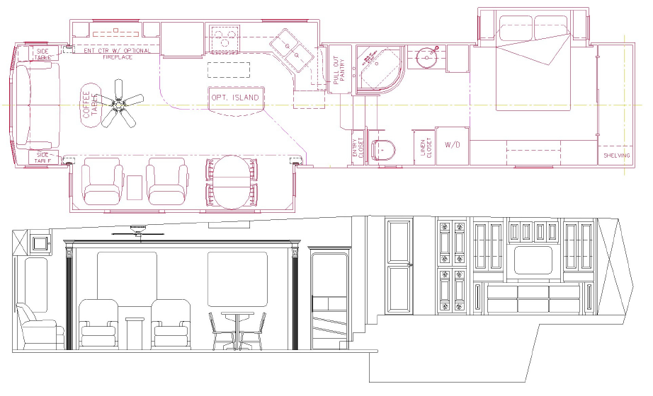After the tour Phil asked if we were interested enough to spec out a unit. The only way to really know what “your” unit will cost is to actually spec one out – but I was hesitant to do this because we were pretty sure we could not afford what we would “want”, and I did not want to waste his time. Surprisingly, when I told him this, and that there was less than a 50% chance we would be buying right now, the answer was “No problem, this is the way we do business – we can spec one out so you can see what it would cost and what you would get for that”. So we did. And we held nothing back – we put on everything we could think of that we would want. This took the rest of that day for the initial “swag” at our trailer. At the end of the day we had basic CAD drawings, and a printed price list with everything detailed. But this was just the START.