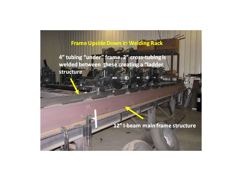 • State of the art, robust frame; 12” I beam on top of 4”tubing. Properly reinforced. Aluminum frame is available for weight savings.
