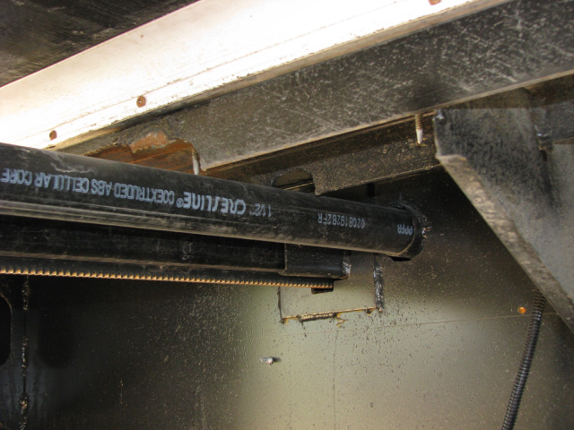 One of the things we disliked in our 2010 coach was the way the electric wires were retained under the slides. The new method encloses the wiring in tubes. This completely protects them and makes the entire under-slide area much neater. The tube moves in/out with the slide. The photo shows a hole blown through the frame - this was the prototype installation. These holes are now reinforced with a welded plate like you see with the slide arm. The reinforcing plate has a neater hole in it.
