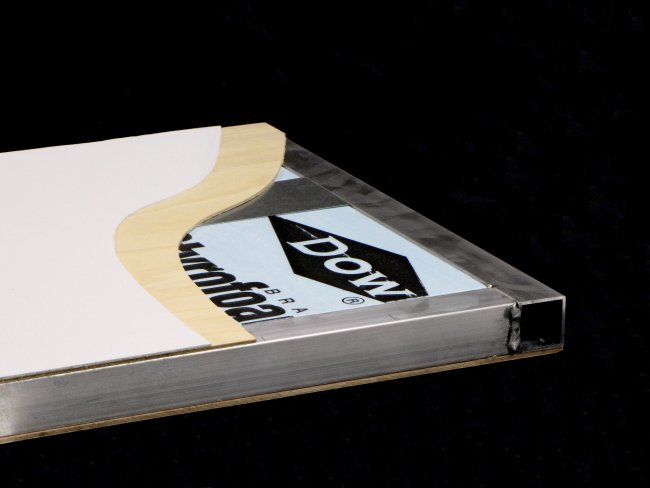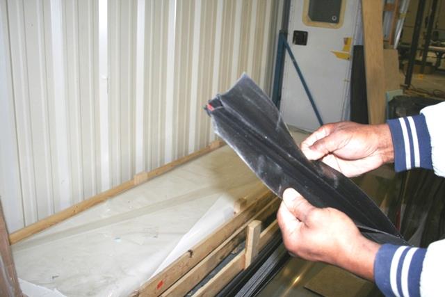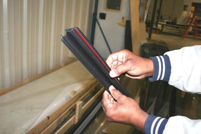 Wall Layers.JPG (29558 bytes)Truck on wall.JPG (60594 bytes)The pinch-rolled  laminated exterior walls are constructed of blue Dow polystyrene (like that used in walk-in freezers) framed with aluminum. A continuous film of adhesive is used to bond the exterior surfaces to the aluminum and polystyrene, resulting in an incredibly strong structure. Just walk on the roof of a New Horizons and you will feel the difference from other RVs. This same technique is used for all sides of the slide out rooms - including the floors. This gives you superior insulation in the slide outs – uncommon elsewhere. In the picture to the left, that is an F450 using a wall section with no aluminum framing in it as a ramp.