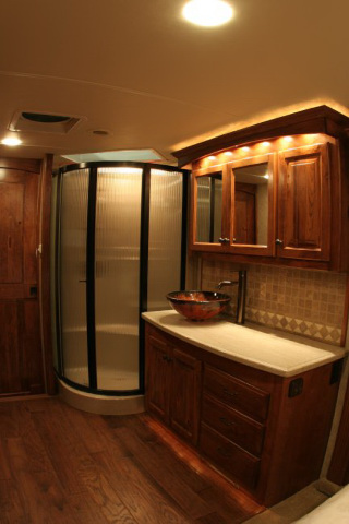 • I'd like to see a shower that used a preformed pan and then the walls are Corian/Silestone/artificial marble, with tile inlays. I think this makes for a nicer shower more in line with the rest of the residential look of the coach. I'll probably do this in the next unit if it does not become an option or standard. It will add cost to the coach because of the time required to install it, and the additional material costs.