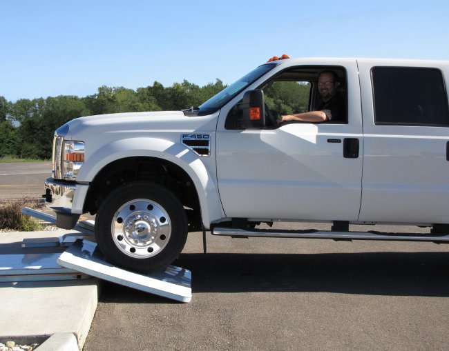One of the issues with using an F450 as a tow vehicle is body side clearance. The side rails on an F450 - and most pickup-style trucks - are pretty high. You can end up with only 5" or less clearance between the truck and trailer. I strongly advise that you measure carefully. Or better yet, if towing with an F450 specify a hauler body on it. I personally like the Utility Bodywerks beds. It gives you lots of storage, lots of clearance, and looks great.
